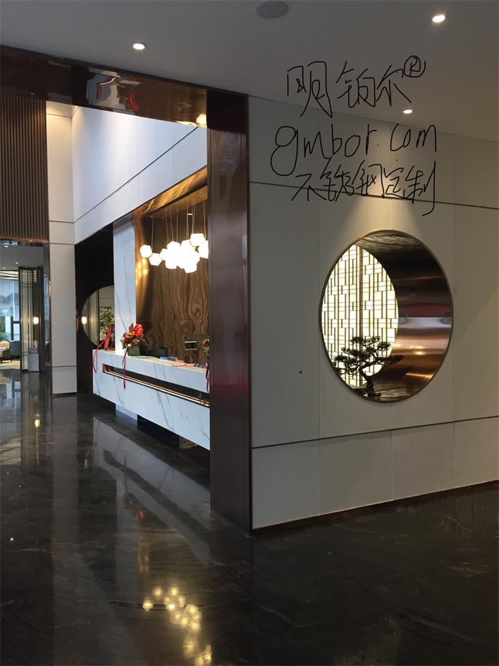 不銹鋼藝術屏風隔斷造型,明鉑爾不銹鋼藝術工程,南陽青楓苑售樓中心,深圳香港設計大師,國際藝術標準設計,