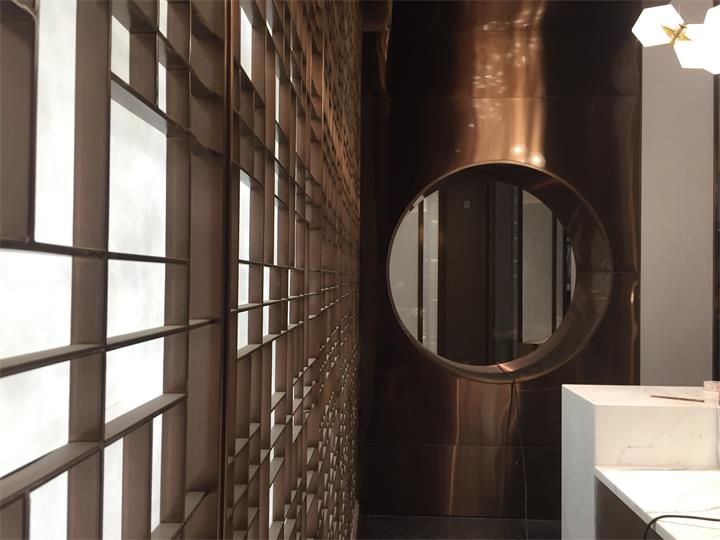 不銹鋼藝術屏風,5mm*20mm尺寸拼接現代式與中國風結合的藝術紅古銅屏風背景墻吧臺