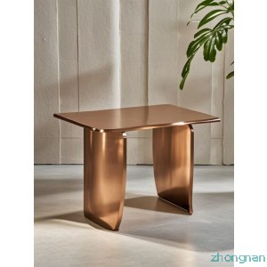 獨特的桌子以其古銅色的不銹鋼材質和不規則的設計,成為現代家居裝飾中的點睛之筆。它不僅具備實用功能,更是一件藝術品,為您的居室增添時尚與品味。