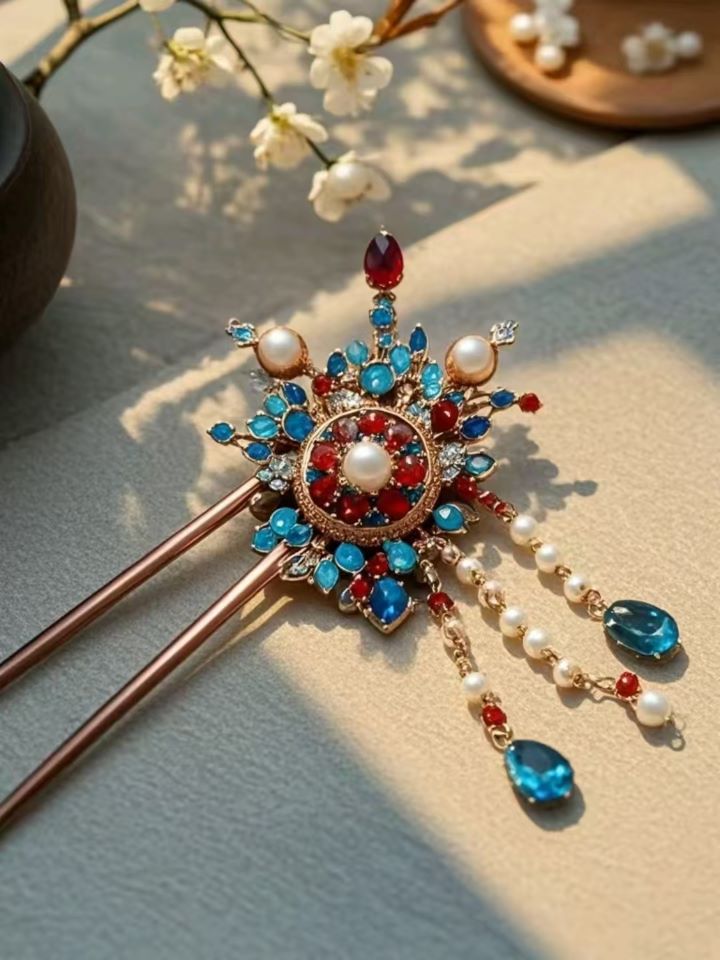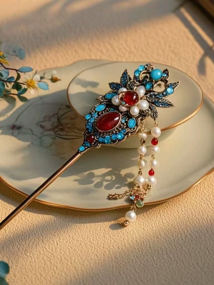 這款系列不銹鋼古銅色古風(fēng)簪子,將現(xiàn)代材質(zhì)與古典韻味完美融合。簪身呈古銅色澤,仿若歲月沉淀的痕跡,不銹鋼的質(zhì)地又賦予其堅(jiān)韌與耐用。簪頭精心雕琢,或有紅寶石的明艷熾熱,似燃燒的晚霞,嬌艷欲滴;或鑲嵌藍(lán)寶石,如深邃夜空的星子,幽藍(lán)深邃,散發(fā)神秘冷艷之光;又或以珍珠點(diǎn)綴,圓潤潔白的珍珠恰似月光凝
