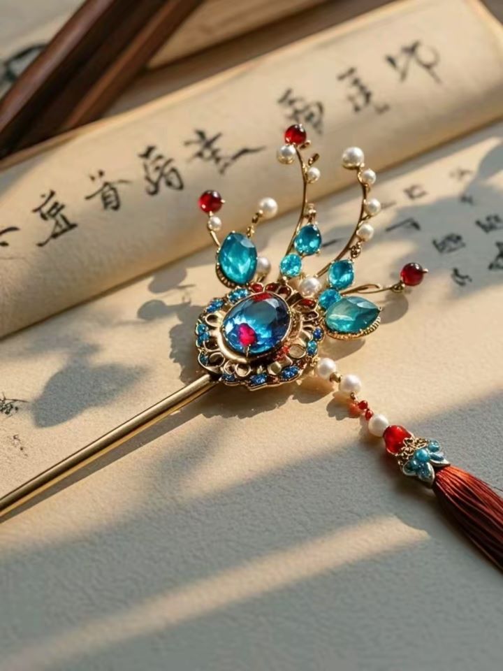 華,散發(fā)著柔和溫潤的光澤。此簪無論是斜插于發(fā)間,伴青絲搖曳,彰顯東方女性的溫婉與優(yōu)雅,還是作為收藏珍品,置于錦盒之中,都承載著千年古風(fēng)的獨(dú)特魅力,讓人不禁沉醉于那如夢(mèng)似幻的古典情境之中。
